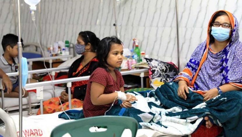 ডেঙ্গু আক্রান্ত মেয়েকে হাসপাতালে মা । ছবি সাননিউজ