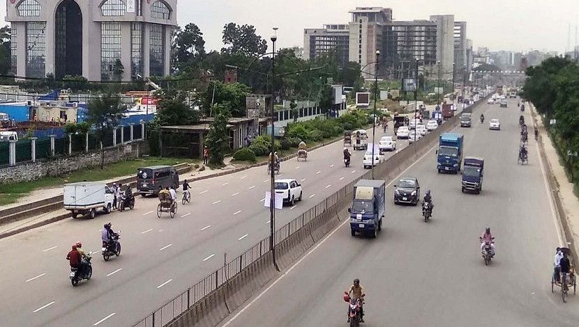 লকডাউনের অষ্টম দিনে রাজধানীর খিলগাঁও উড়াল সেতুর দৃ...