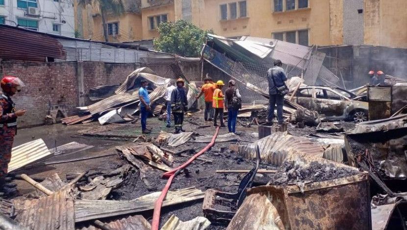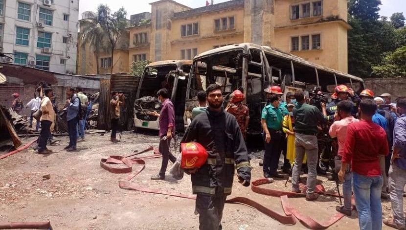 মতিঝিলে আগুন পুরে গেছে গ্যারেজ ( ছবি.জাহিদ রাকিব)