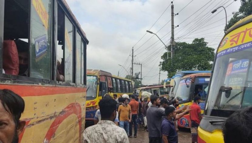 নিদিষ্ট গাড়ির জন্য অপেক্ষায় যাত্রীরা । মহাখালী বা...