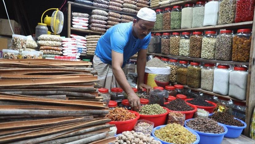 রাজধানীর কাপ্তান বাজারে মসলার পসরা নিয়ে বসেছেন দোক...