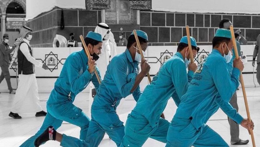 কাবা ঘরের মেঝে পরিষ্কার করা হচ্ছে। এবার স্বল্প পরি...