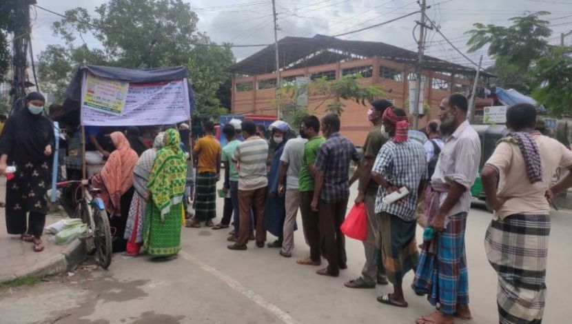 টিভিসি পণ্য নিতে লাইন ( ছবি. সুলতানা আক্তার )