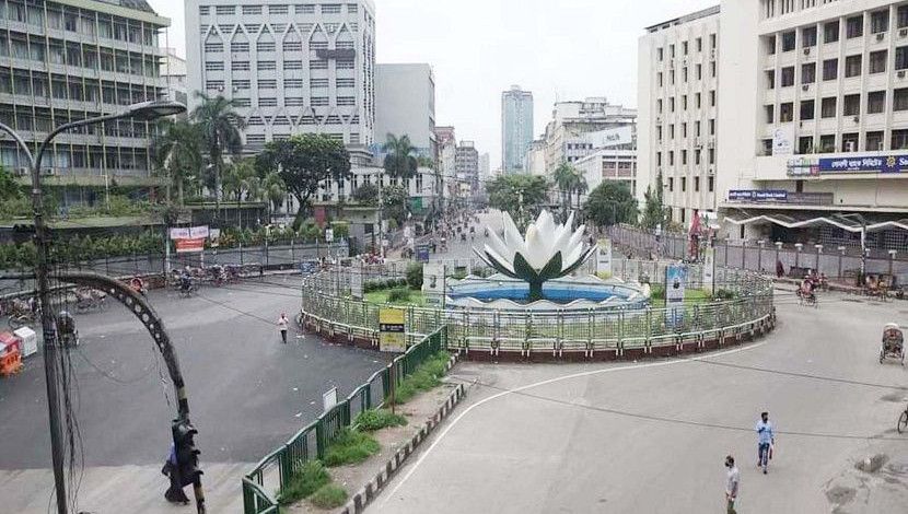 কঠোর লকডাউনের পঞ্চম দিনে রাজধানীর শাপলা চত্বরের চি...