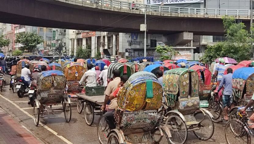 লকডাউনে বেড়েছে প্রাইভেট কার ও রিকশা চলাচল। ছবি: জ...