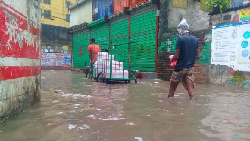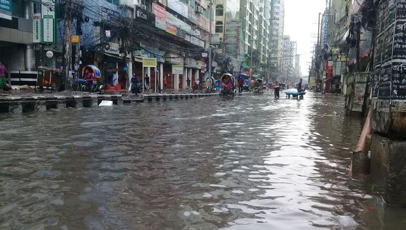 বৃষ্টিতে সড়কে জমেছে পানি। পশ্চিম রাজাবাজার, ফার্মগ...