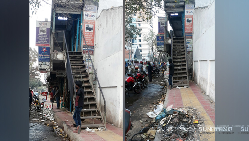 ফুটপাতটি উঠে গেল সোজা দোতালায়। ছবি: ঢাকা...