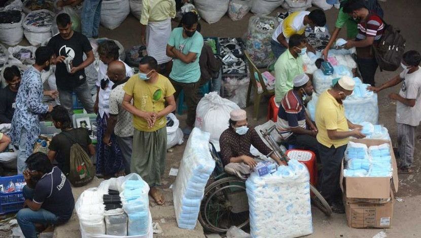 করোনা মহামারির মাঝে নগরীতে মাস্ক বিক্রির মার্কেটে...